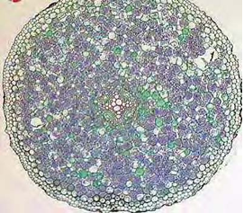 Q1. Identify the type of vascular bundles(inside look of stem) as a dicot or monocot.