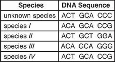Q21. Based on the data in the table above, the unknown bacterial species is most closely related to which of the follow- ing species?