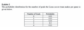 Q20. Refer to Exhibit 2, what is the probability that in a given game the Lions will score no goals?