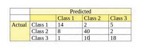 Q18. Given the following confusuin matrix for a multi class classifier. What is the accuracy of the classifier?