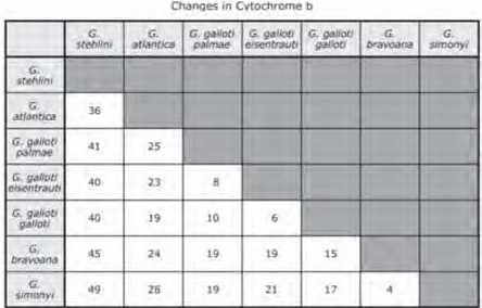 Q25. Researchers studying populations of lizards from the genus Gallotia on the Canary Islands compared the protein cytochrome b in different populations. The table shows the number of dif ferences in the cytochrome b protein between different populations.Which conclusion about the relatedness of the lizards do these data support?