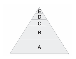 Q5. Looking at the image of a food pyramid layout, what letter best represents where you will find heterotrophs?
